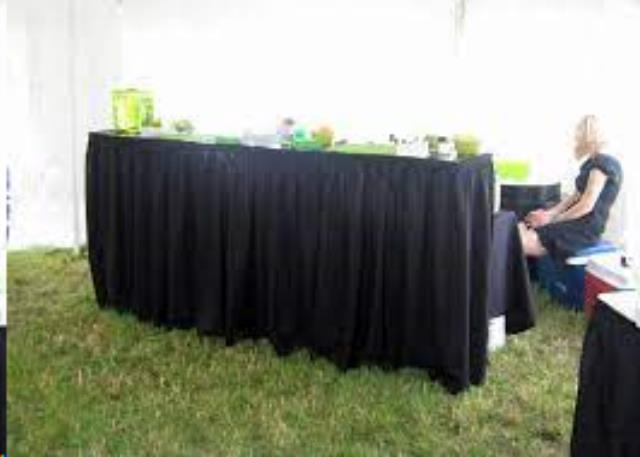 * Please call us for any questions on our 8 foot x45 inch black box pleat bar skirt rentals serving Richmond and Central Virginia